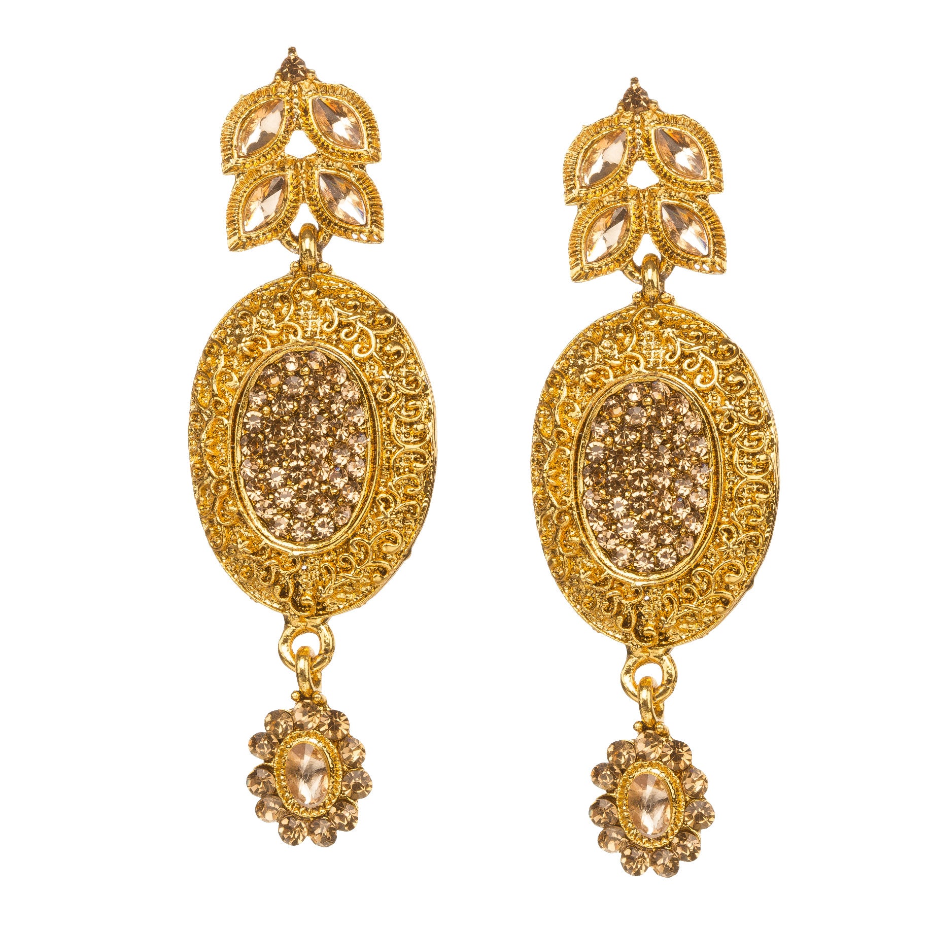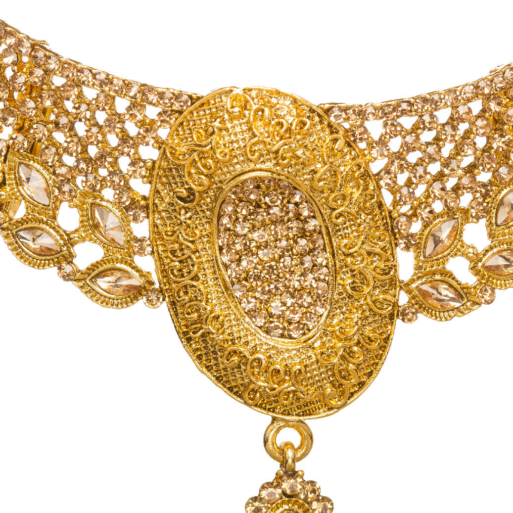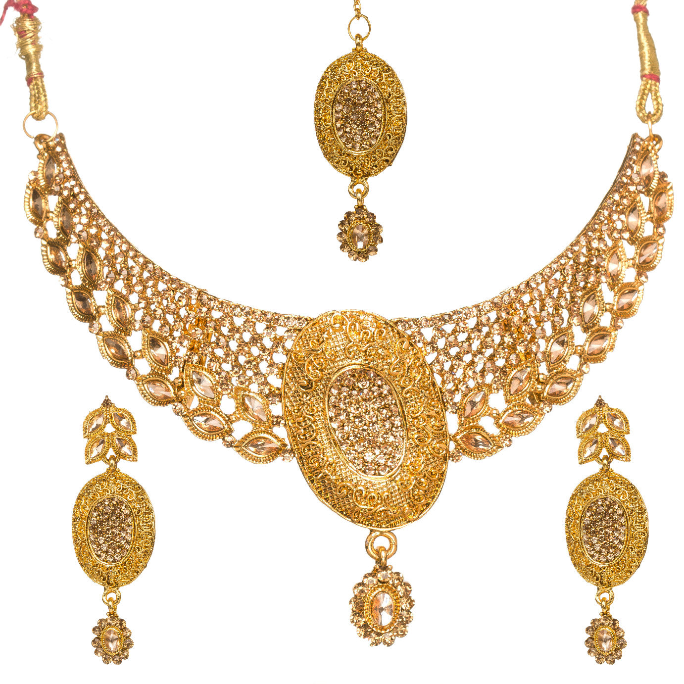 Indian customers have a preference for various necklace styles, including simple pearl necklace malas, choker necklaces with earrings, and complete jewelry sets comprising earrings, necklaces, and mangtikkas. In Hindi, a necklace set is also referred to as "gale ka necklace," and in Rajasthan, Rakhdi sets are popular, especially with Rajputi dresses. Additionally, multilayered Rani Haar or Haram, Jaipuri Kundan necklaces with Jhumka sets, and in certain regions, chokers are known as Haslis. South Indian customers often favor multilayered temple necklace sets. For bridal wear, a complete packet of Dulhan sets is