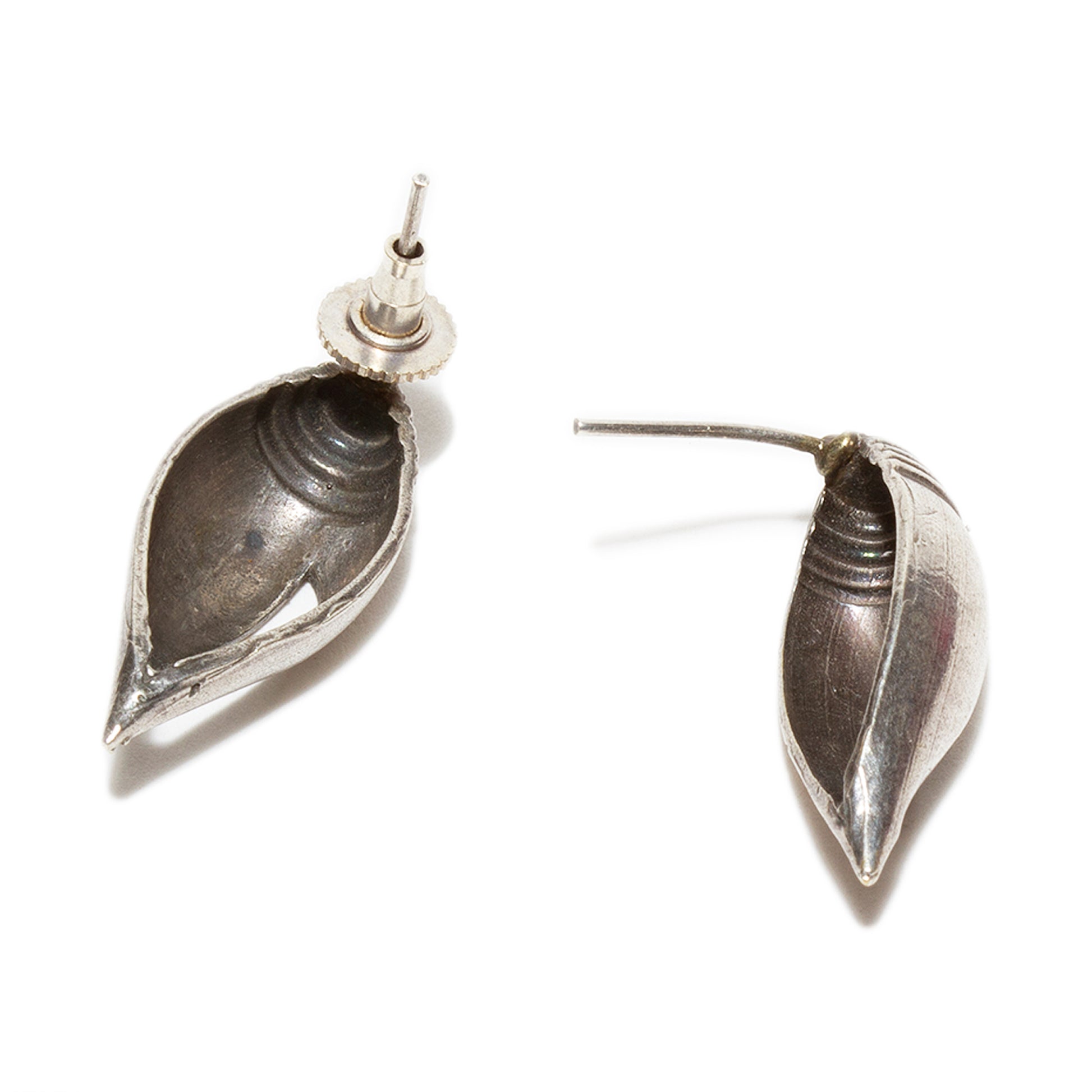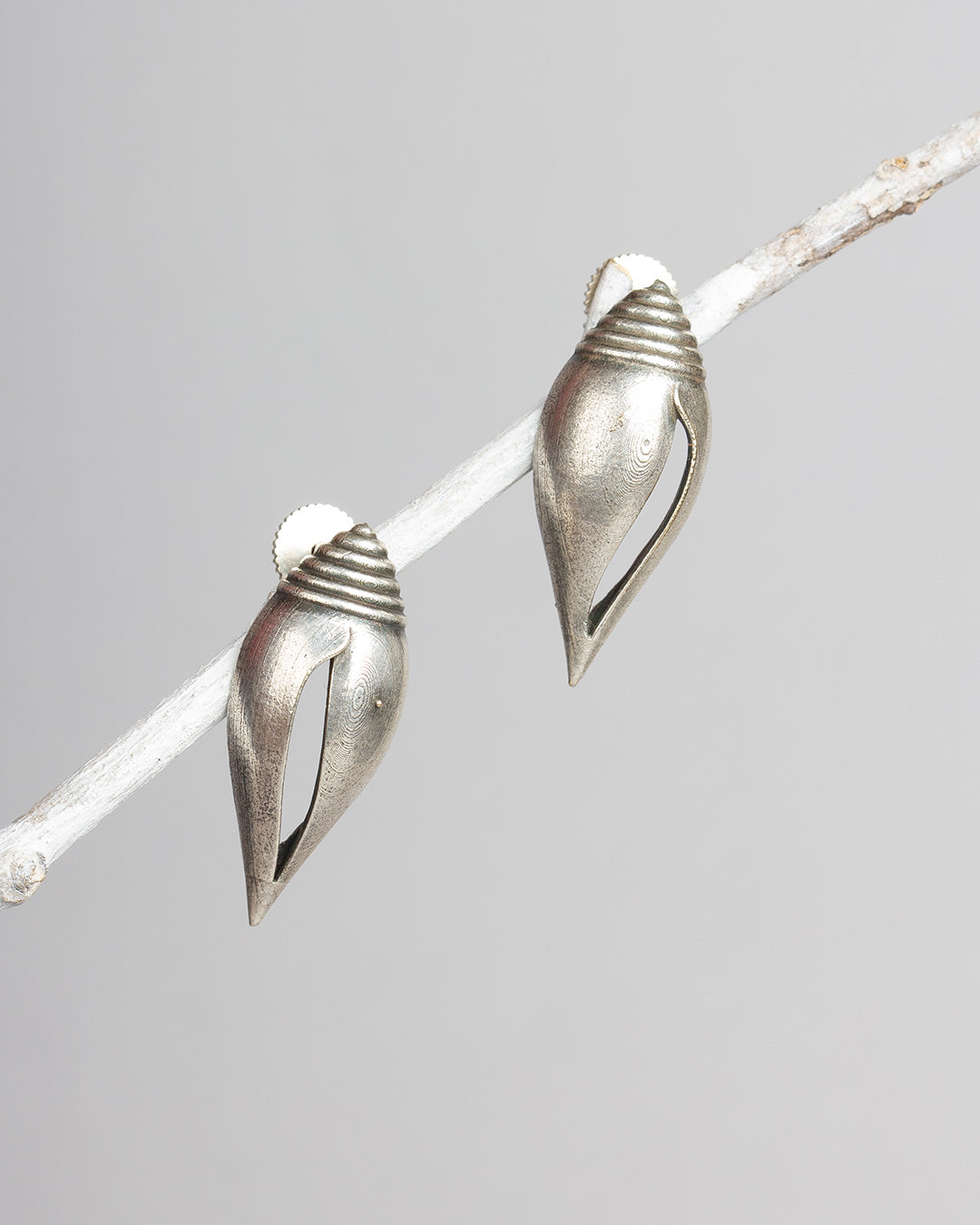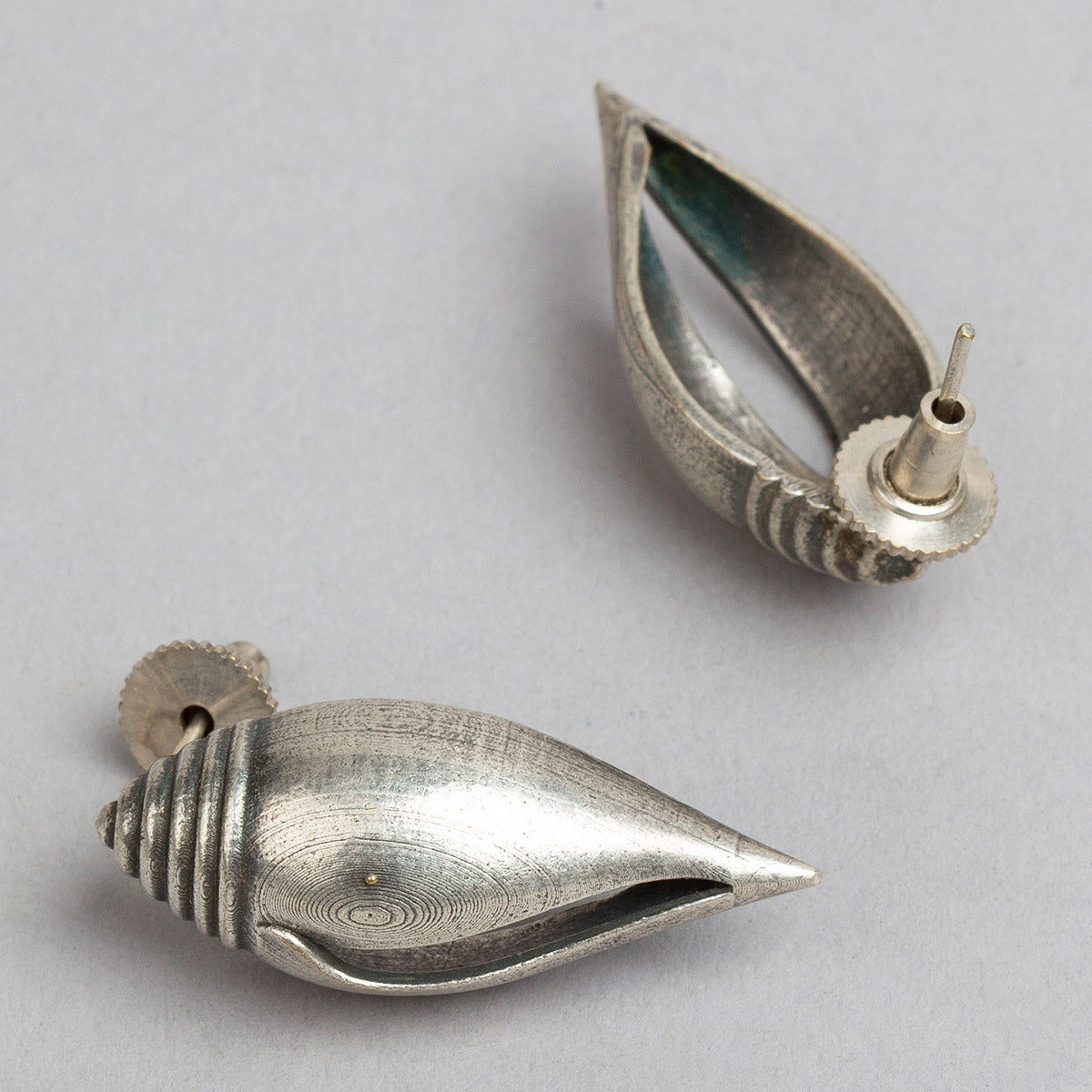 These silver toned oxidized studs shaped like a shankh are perfect for daily wear. Their tiny size makes them effortlessly vouge and they go with any modern and casual Indian outfits. They're light weight so you can keep them on all day, ideal for office or other environments. The push n back design make them easy to wear.