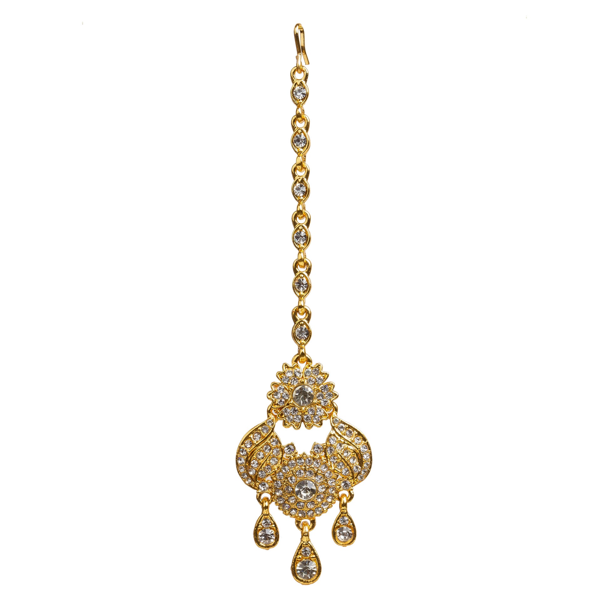 Maang tikka jewellery is crafted using a variety of materials, including: Gold-plated & silver-plated on alloy zinc, brass,copper metal. Kundan stones, Pearls etc.