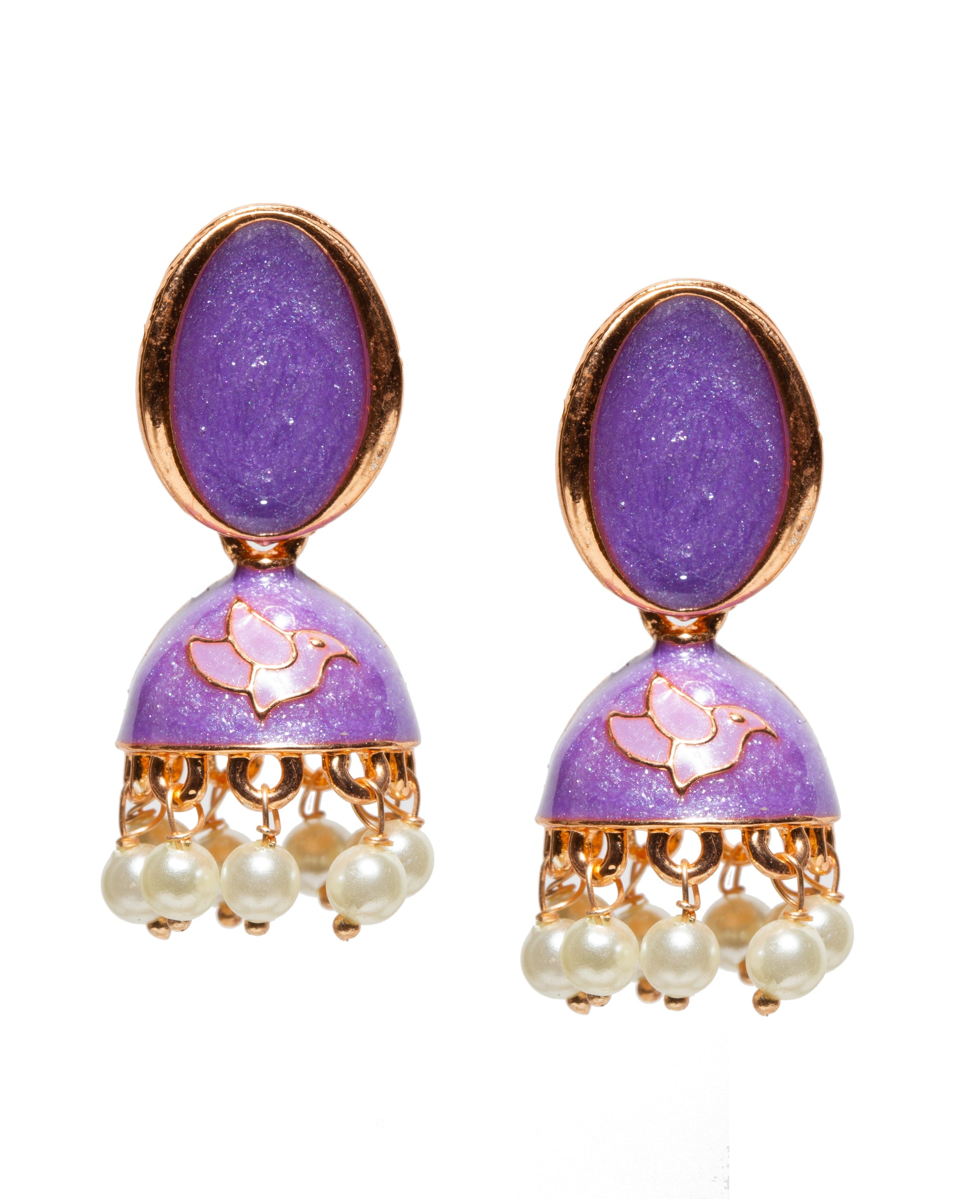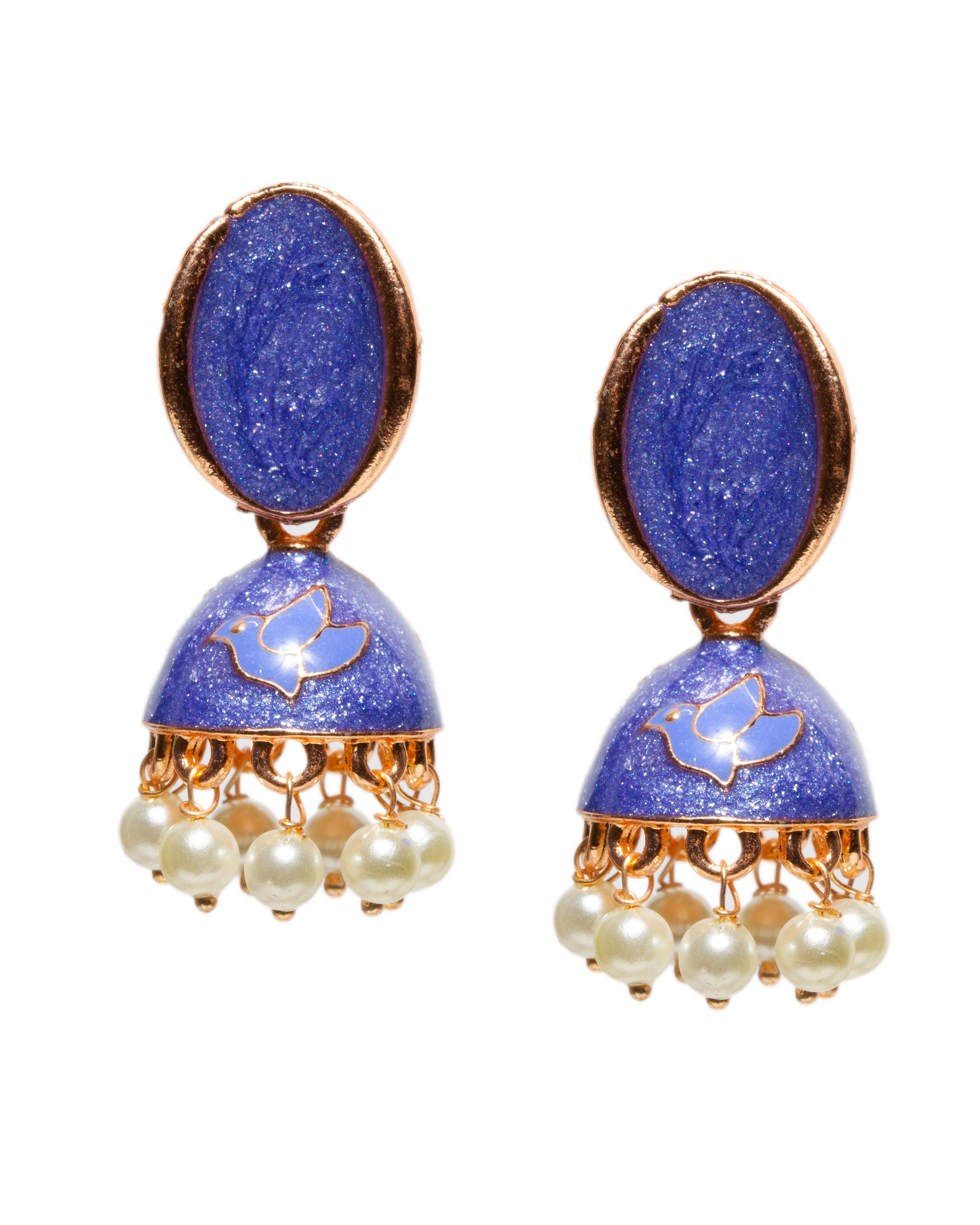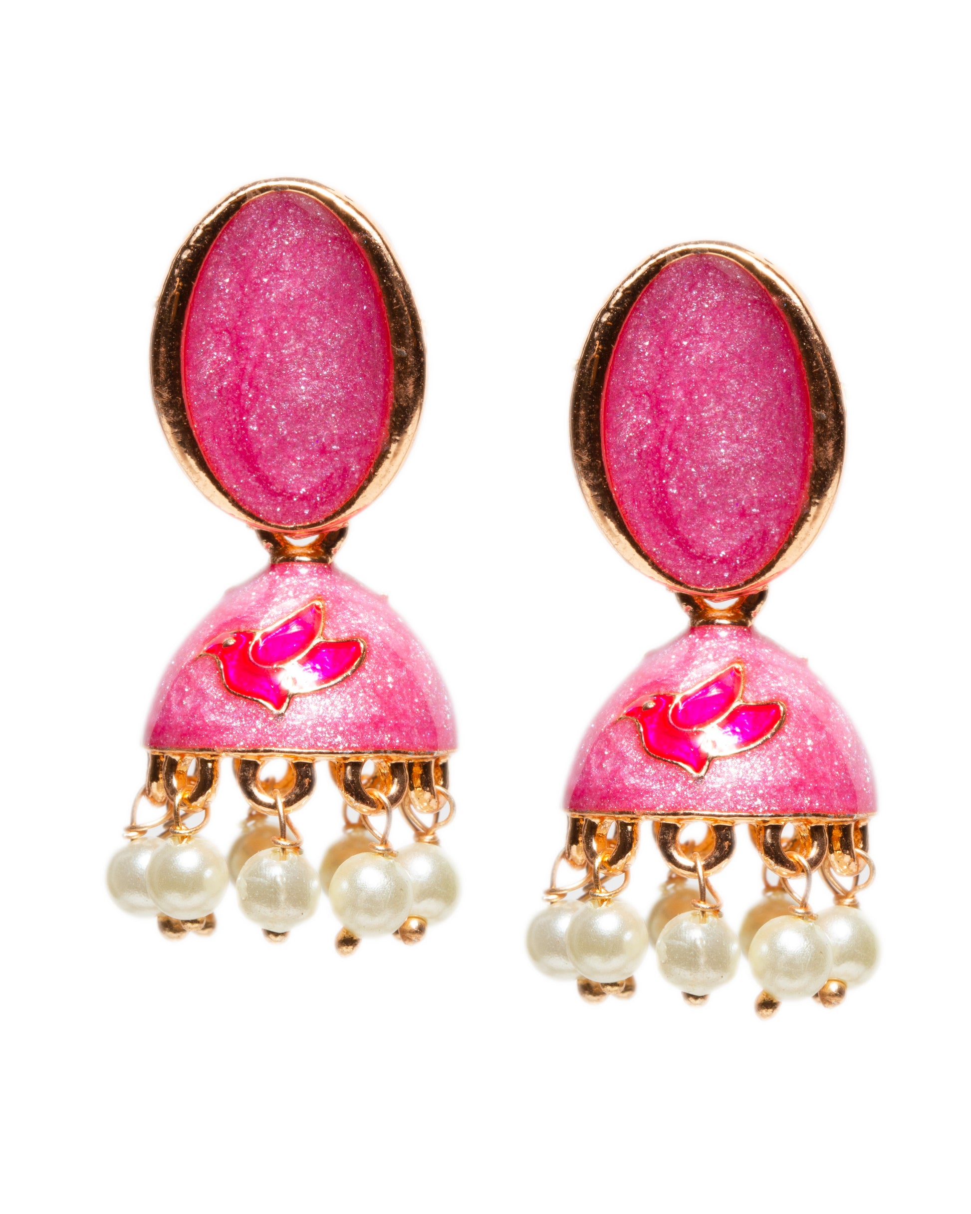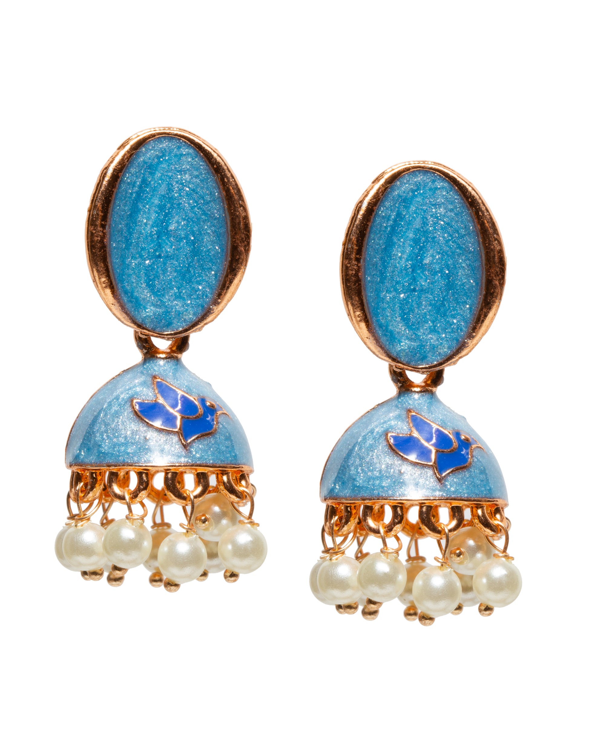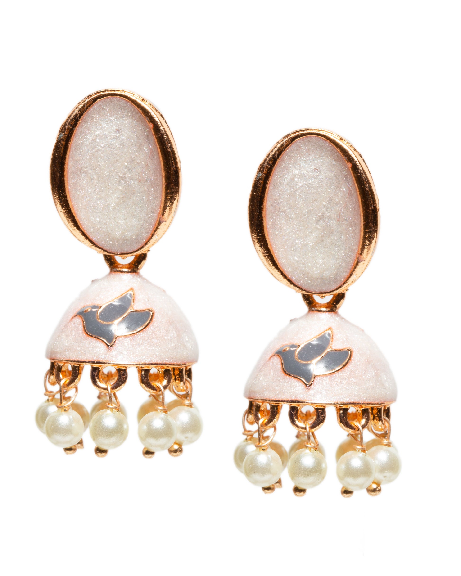 Complete your look with our Nail-Polish Matching Jhumki. The beautiful birds design and hand-painted enamel paint add a touch of elegance. With small pearl beads drops and a weightless feel, it's perfect for daily use, college and office wear. Available in multiple colors for easy coordination with any outfit.
