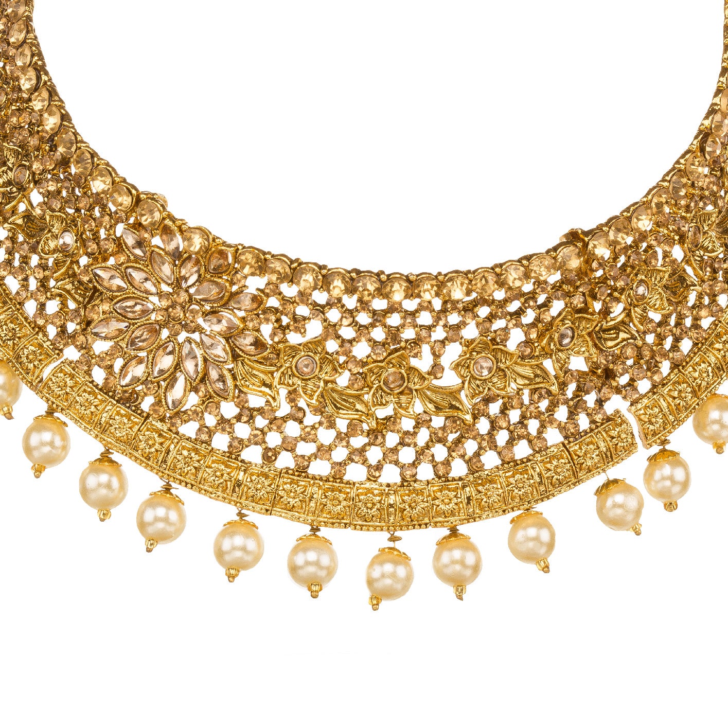 ornate appearance, featuring intricate Kundan work. Collar chokers, on
