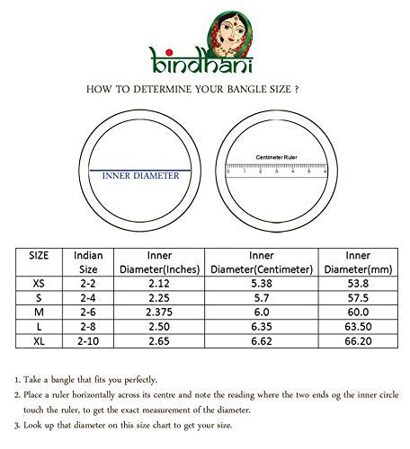 For teenage girls, bangle size typically start at 2-2, then for women bangle size progress to 2-4, 2-6, and 2-8. Bangle size 2-10, especially for those who are healthy and taller.