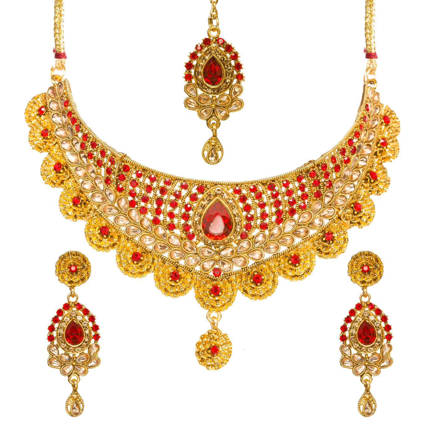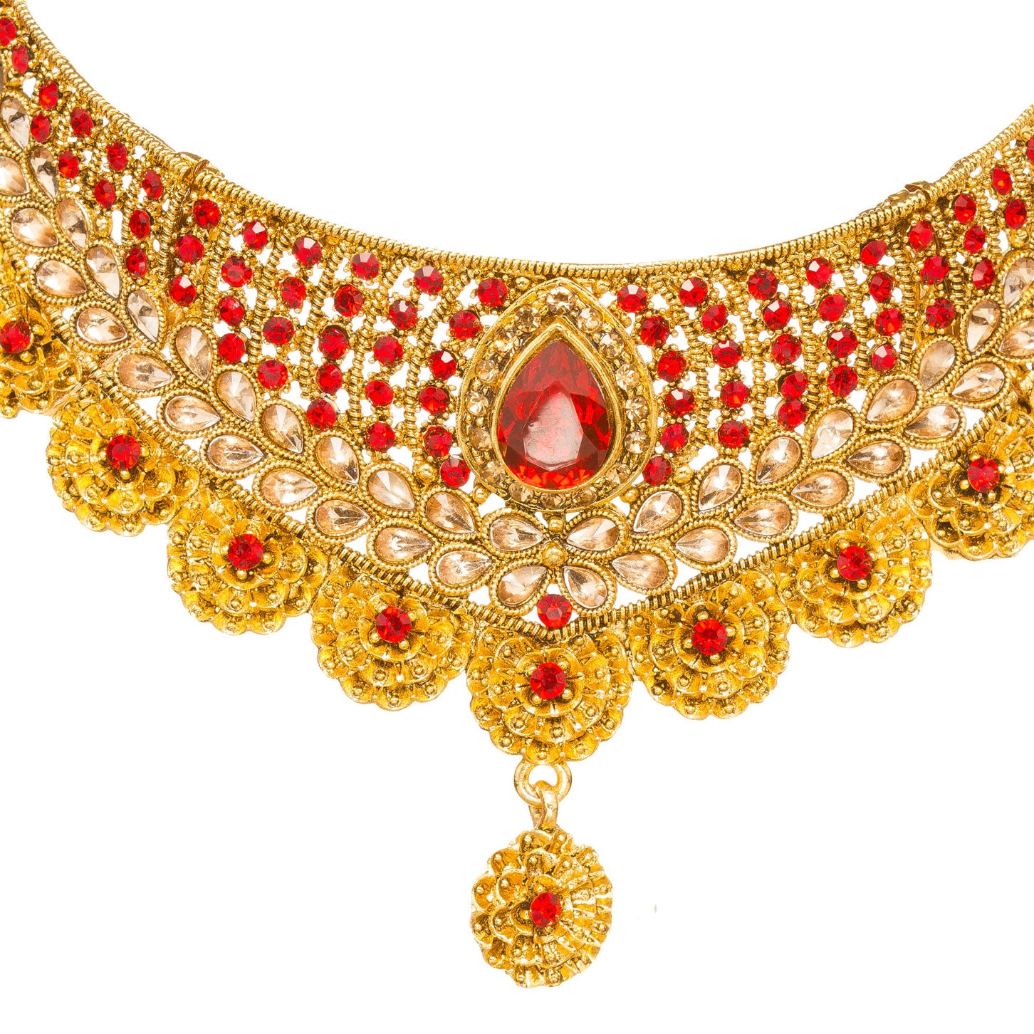Indian customers have a preference for various necklace styles, including simple pearl necklace malas, choker necklaces with earrings, and complete jewelry sets comprising earrings, necklaces, and mangtikkas. In Hindi, a necklace set is also referred to as "gale ka necklace," and in Rajasthan, Rakhdi sets are popular, especially with Rajputi dresses. Additionally, multilayered Rani Haar or Haram, Jaipuri Kundan necklaces with Jhumka sets, and in certain regions, chokers are known as Haslis. South Indian customers often favor multilayered temple necklace sets. For bridal wear, a complete packet of Dulhan sets is