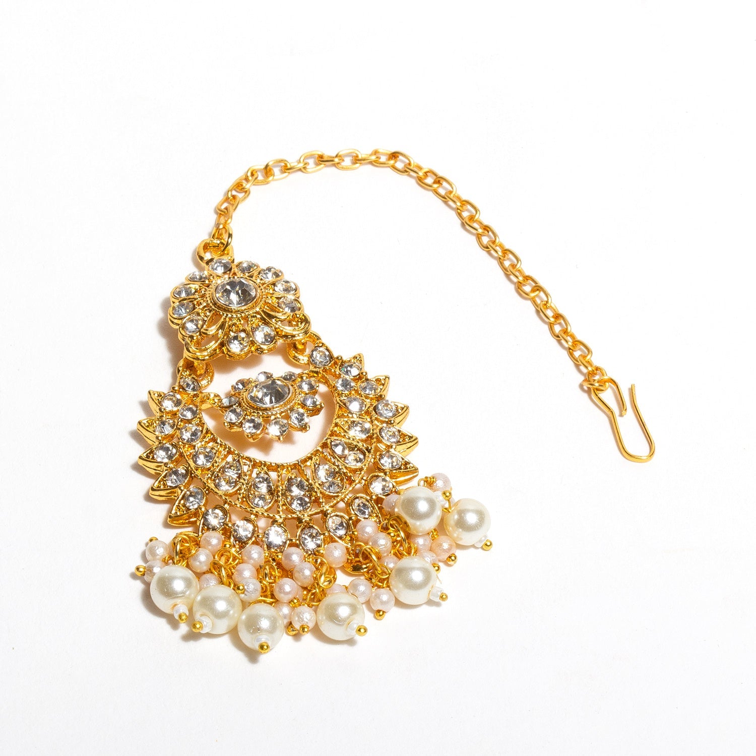 Maang tikka jewellery is crafted using a variety of materials, including: Gold-plated & silver-plated on alloy zinc, brass,copper metal. Kundan stones, Pearls etc.