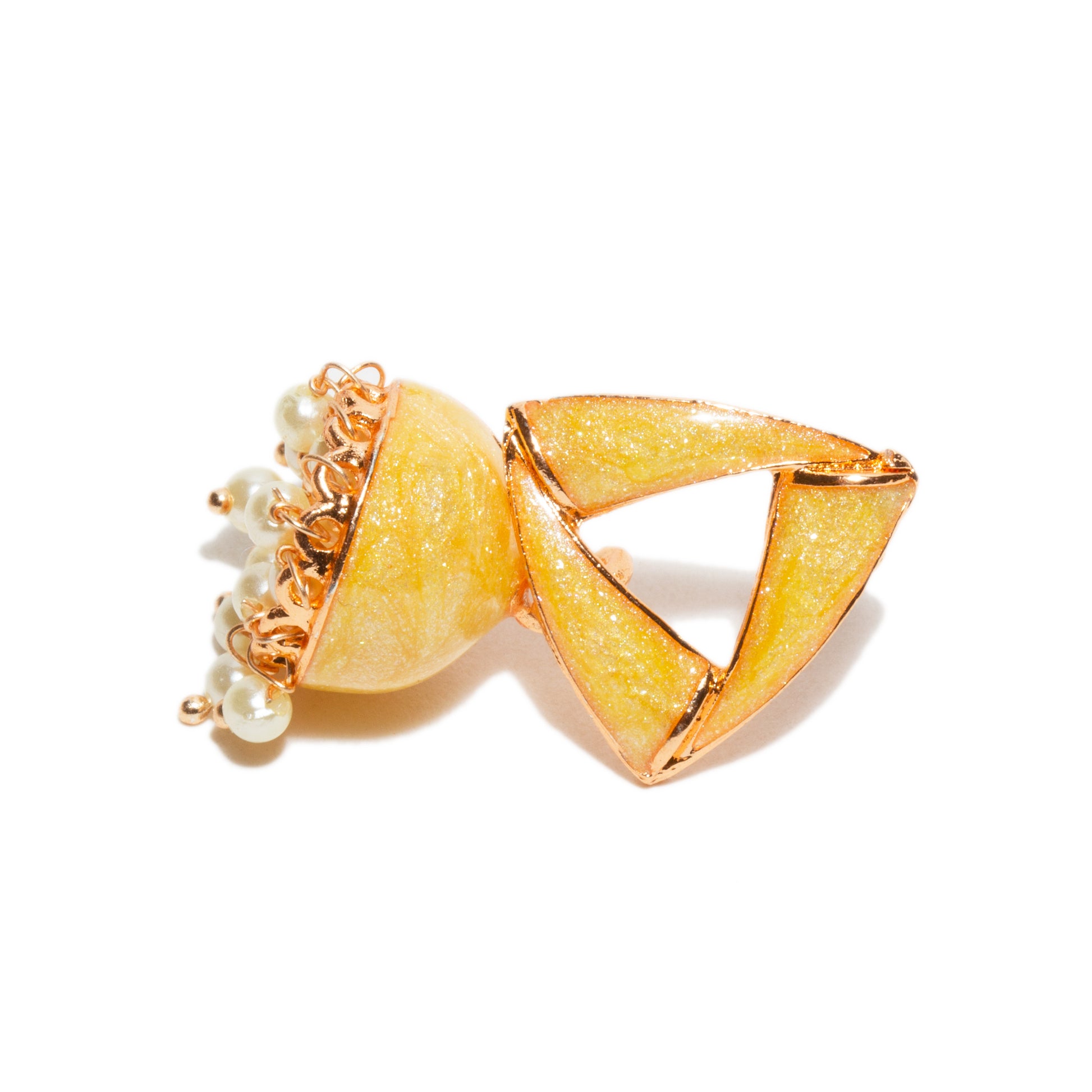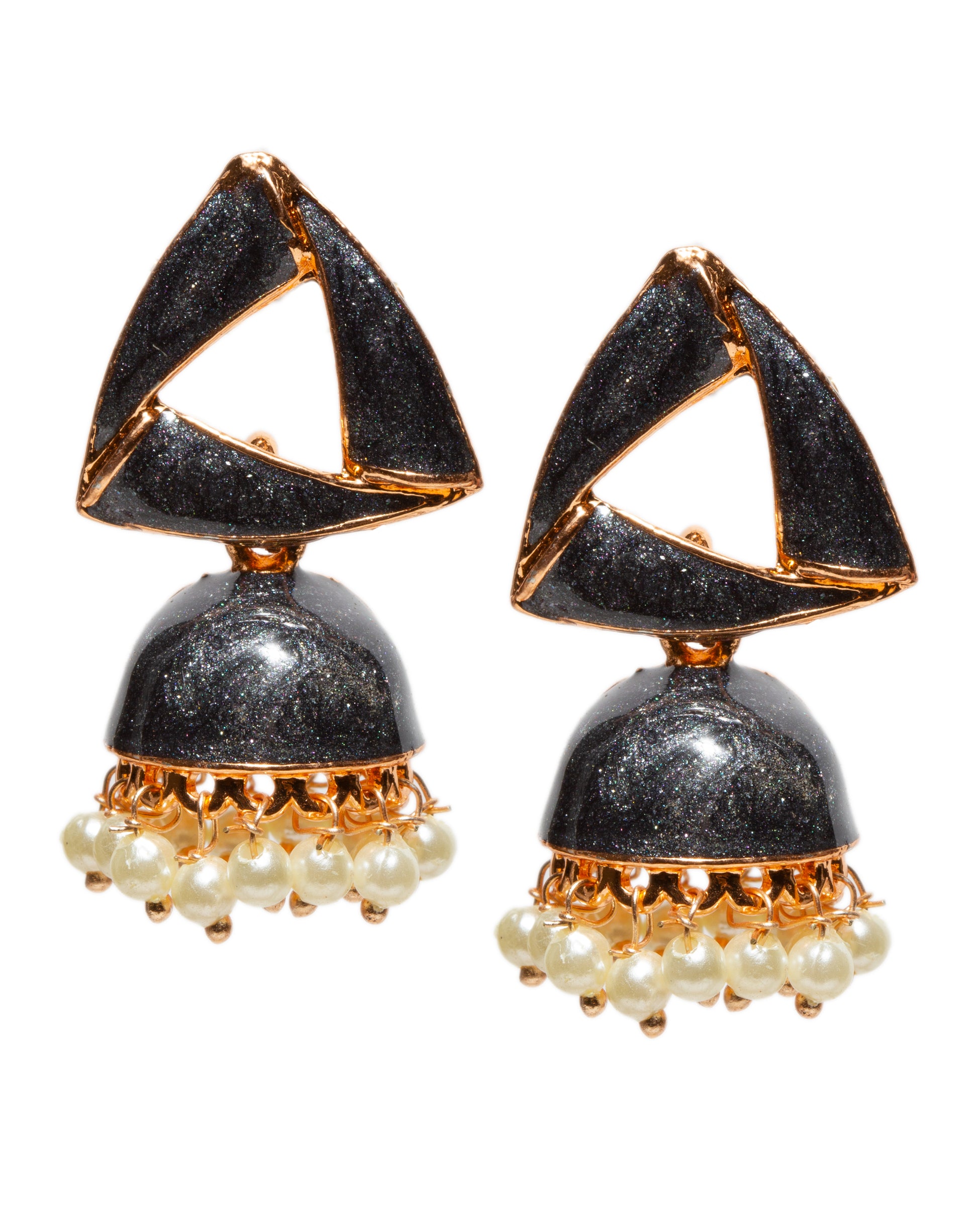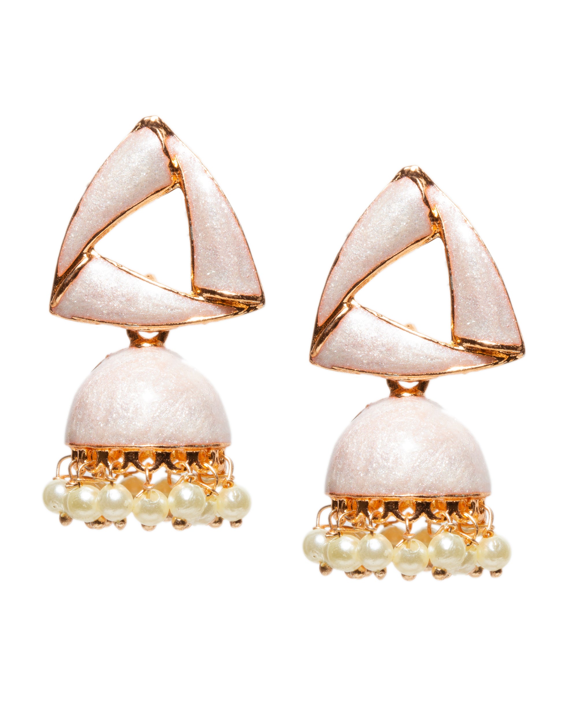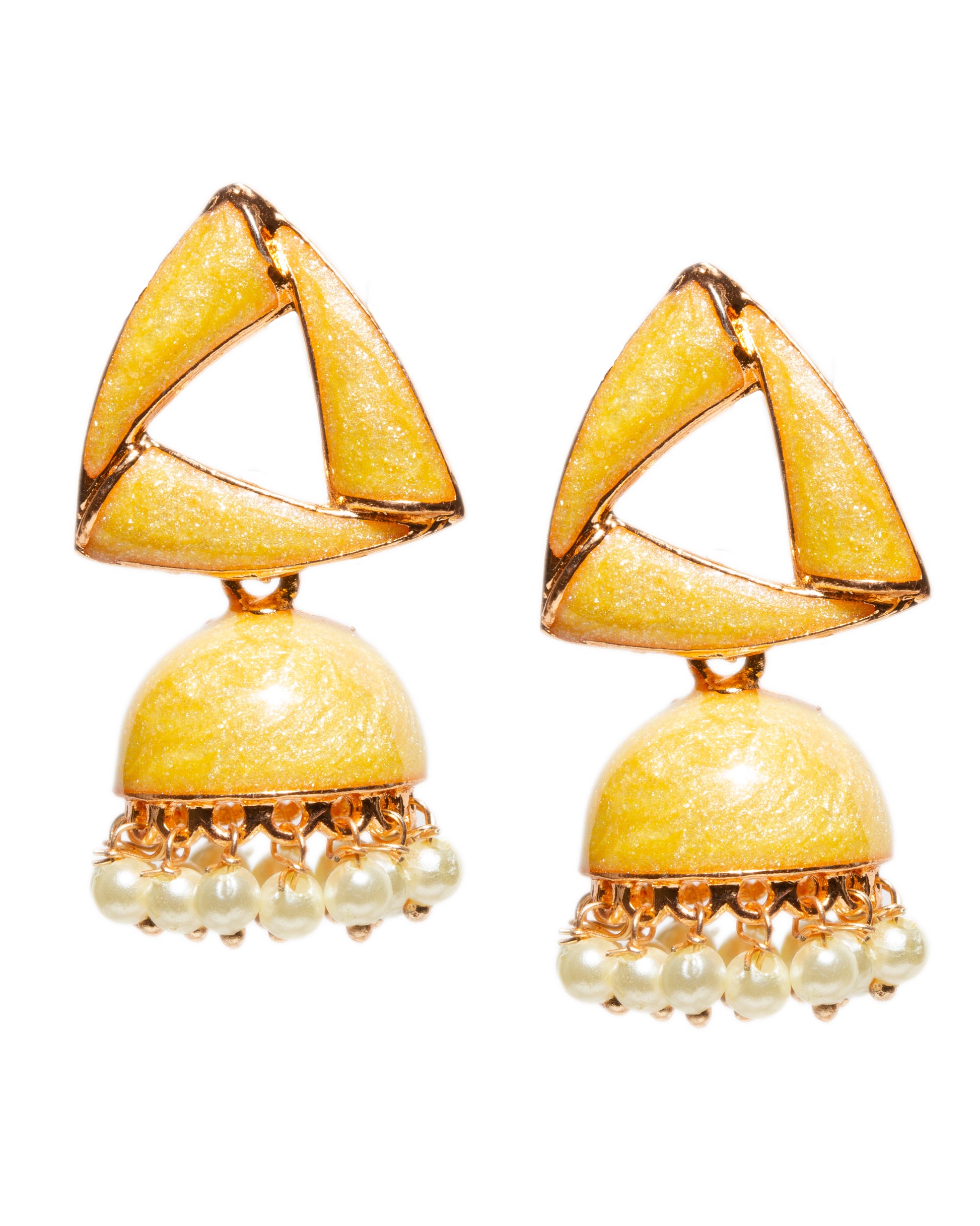 Make a statement with our Small Meenakari Earrings. Hand-painted with high-quality nail polish finished, the meena design has a unique wave-like texture that will catch any eye. Crafted from alloy metal and detailed with small hanging pearl beads, these triangular shaped earrings are perfect for both college and office wear.