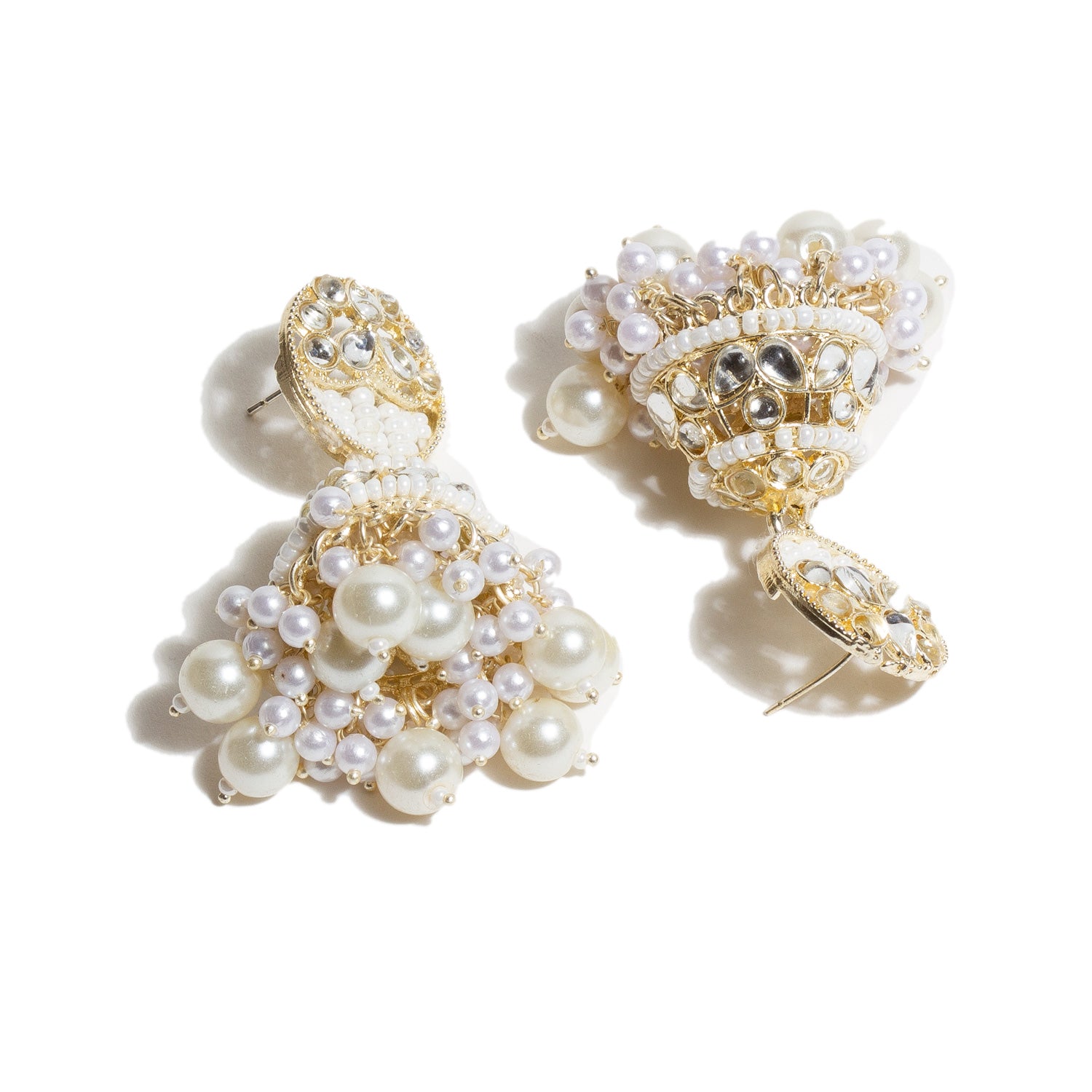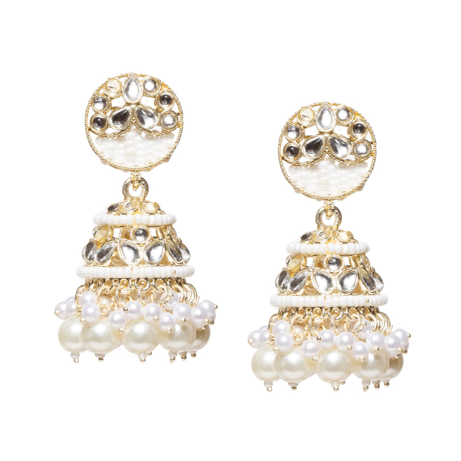 White Pearl Drop Kundan Jhumka Earrings